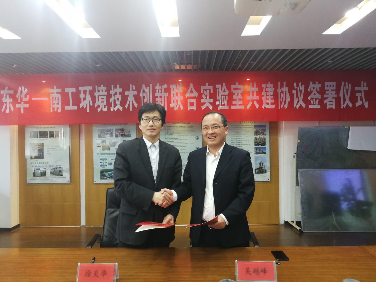 2018年4月17日,东华工程科技股份有限公司与南京工业大学联合实验室共建协议签署仪式在南京工业大学举行。东华科技副总经理吴越峰、技术部副主任刘海涛、联合实验室主任曾秋勇、南京工业大学环境学院院长徐炎华、南京工大环境科技有限公司总经理孙文全、副总经理王金龙及双方技术团队代表参加签约仪式。