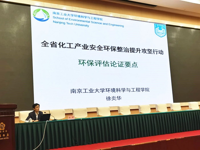 南京工业大学环境学院院长徐炎华教授在动员培训会上作了主题为“环保评估论证要点”的环保排查标准辅导,他从化工环保相关法律法规政策、一票否决项目、废水污染治理、废气污染治理、危险废物管理、环境风险管控与应急、环境管理要求等方面进行了详细讲解。