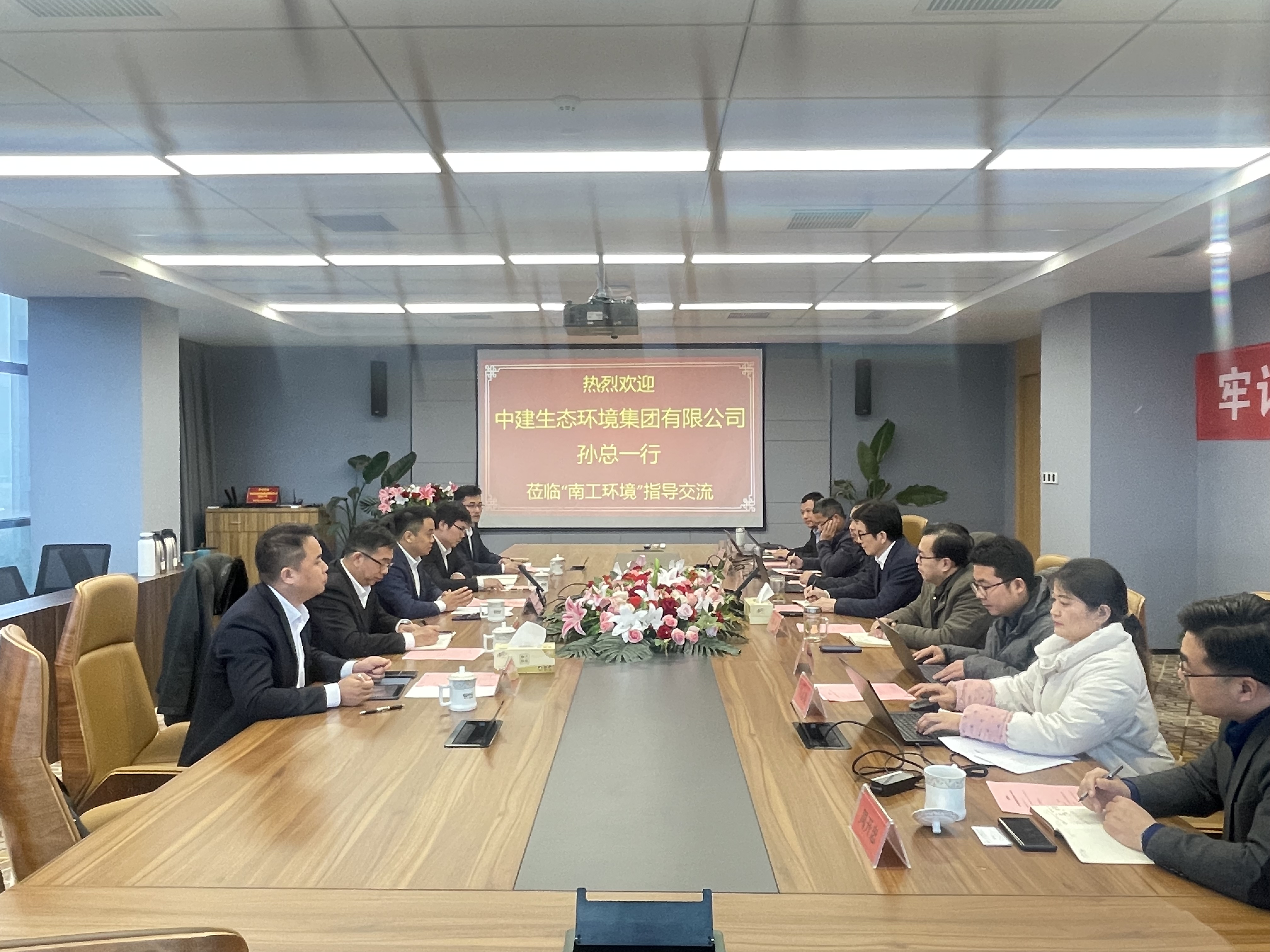 2024年3月4日下午,中建生态环境集团有限公司党委副书记、总经理孙立东一行莅临南京工大环境科技有限公司(以下简称“南工环境”)开展座谈交流。南京工业大学环境工程研究院院长、 “国家特聘专家” 、“南工环境”创始人、首席专家徐炎华教授、“南工环境”常务副总蒋峰等相关领导参与座谈交流。
