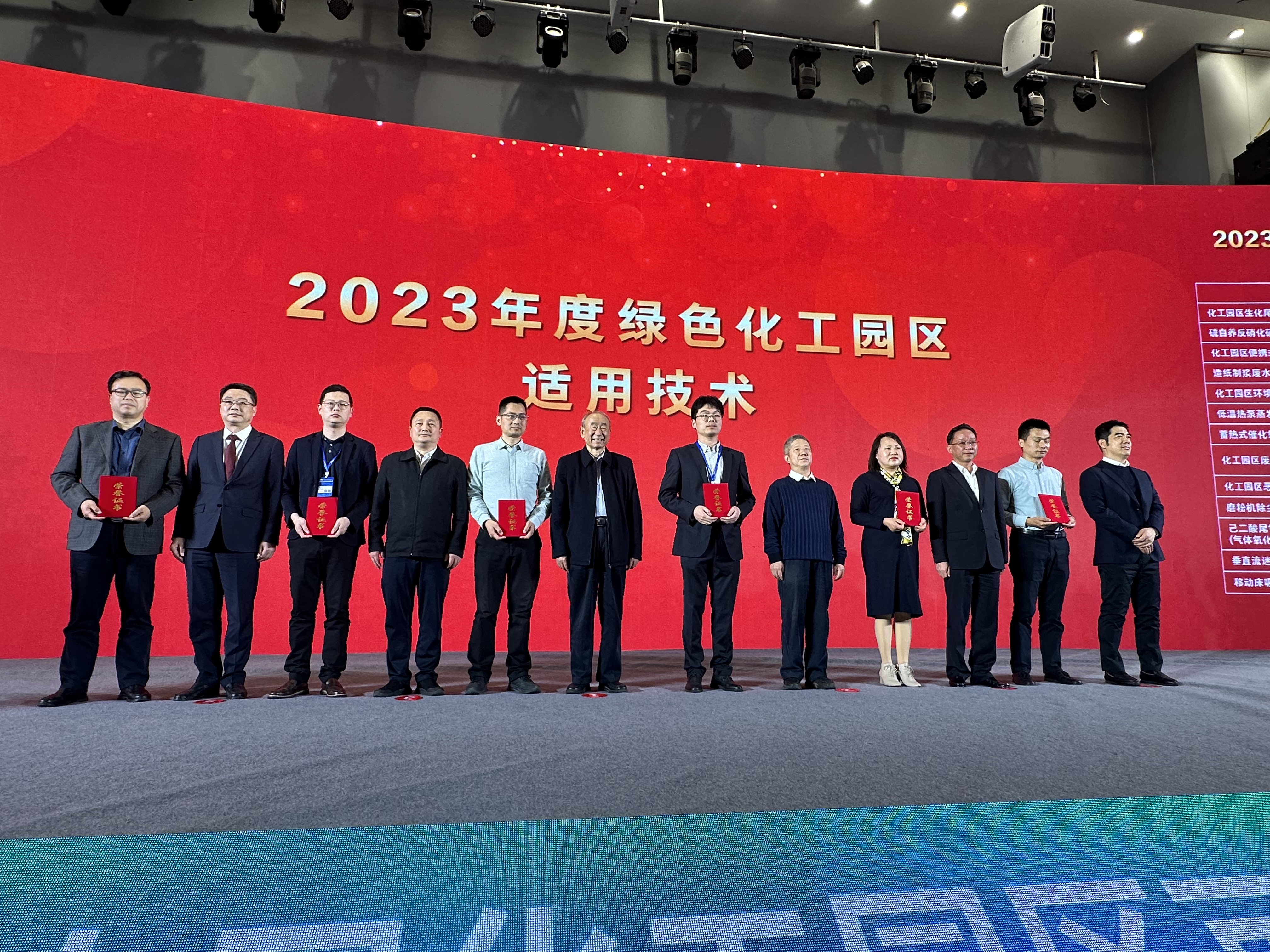 图丨常务副总经理蒋峰代表“南工环境”上台领取“2023年度绿色化工园区适用技术”荣誉证书(左起第一)