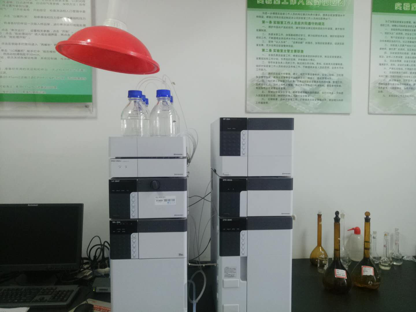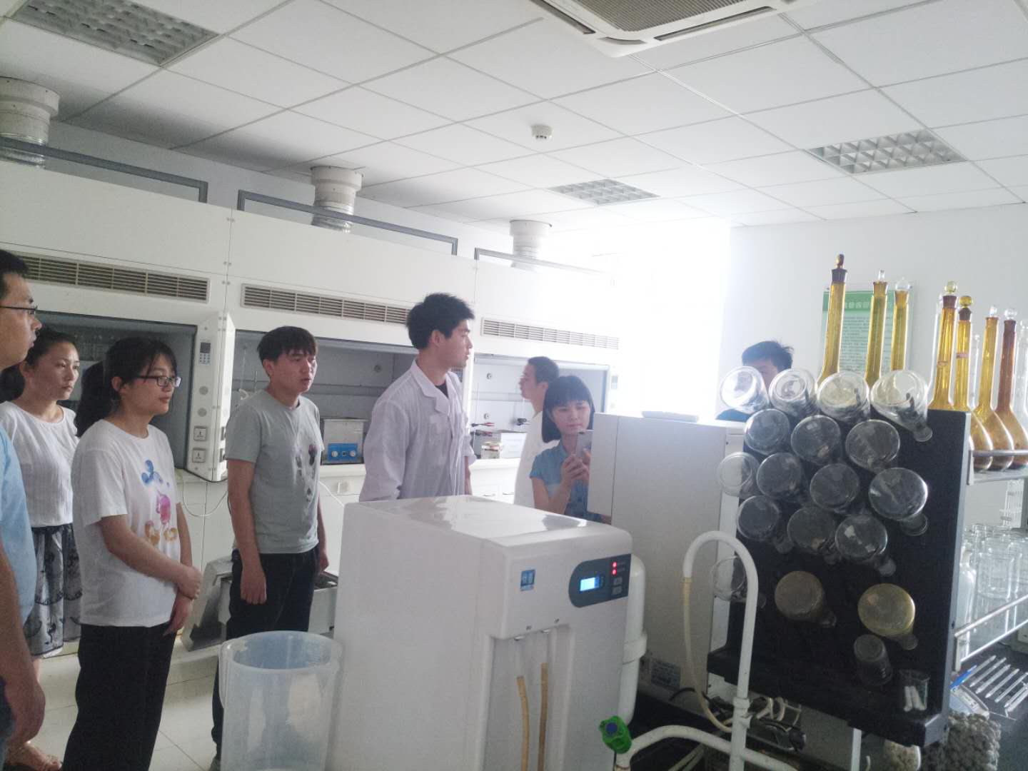 翁工向我们介绍了臭氧催化氧化装置,臭氧催化氧化装置主要用于各种废水的预处理和深度处理,针对高COD、高色度、高毒性和臭味的废水有很好的效果;通过自制研发的催化剂、氧化剂结合臭氧降低废水中的COD、色度、毒性和臭味,显著提高废水的可生化性,保障后续生化的稳定运行,可能够对生化出水做深度处理,使之达标排放。各种预处理工艺,例如:针对高盐分的废水,可以使用减压蒸馏小试装置(现场MVR工艺);针对高氨氮的废水可以使用高效吹脱和氨资源化技术;针对高油类废水可以使用破乳隔油技术,针对高COD和高毒性可以使用微电解、芬顿等技术;针对悬浮物可以使用混凝沉淀技术;针对高硝态氮可以使用ANO工艺等等。各种生化装置及其作用和对比有AO、A2O、SBR、UASB和MBR。ICP(电感耦合等离子质谱仪)主要是对水中的金属(钙、镁、锑、砷、钡、铬、镉、铅等)及阴离子(P、S等)定量检测。原子吸收仪对水中的金属(钙、镁、铜、铬、铁等)微量元素的检测,精度没有ICP高。XRD对照标准谱图分析纳米粒子的组成,分析粒径,结晶度等,能够对未知固体检测出里面的组成成分。MS(气相色谱仪)和GC-MS(气相色谱-质谱联用仪)低于能气化、热稳定性好和沸点较低的样品,气质可以定性测定样品的各种有机物,气相可以定量测定各种有机物的含量。HPLC(高效液相色谱)溶解后能制成溶液的样品,液相色谱均可以定量测定各种有机物的含量。傅里叶变换红外光谱仪用于测定各种固体可以对样品进行定性和定量分析样品,对比图谱可得到样品中的个官能团的种类和含量。TOC仪能够测定各种废水中的总有机碳和总氮的含量。
